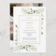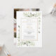 Um elegante convite de recordação botânica personalizada para cores aquáticas, celebrando a recordação da vida com uma colagem de 3 fotos no verso. Projetado por Thisnotme©