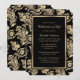 Vintage elegante celebrações de preto e ouro de um convite de vida com um quadro de ouro de ornamentos botânicos.