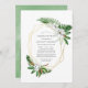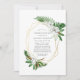 Trendy sage, folhas tropicais verdes e brancas de aquarela e magnólias brancas Celebração do convite Life com quadro geométrico dourado.