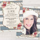 Um convite para comemoração de na moda da vida memorial, com um elegante design floral com listras no mármore. No verso há espaço para uma foto personalizada.