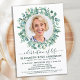 Funeral Moderno Eucalyptus Memorial / Celebração Do Convite À Vida. Estes convites para funeral de simpatia apresentam uma foto em um design de eucalipto verde. Personalize esta celebração do convite para o funeral de vida com as fotos, nomes e datas de seus entes queridos, detalhes do evento. COPYRIGHT © 2021 Judy Burrows, Black Dog Art - Todos Os Direitos Reservados. Eucalyptus Greenery Foto Moderna Celebração de Vida Convite