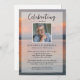 Honre o seu amado com esta bela celebração do convite à vida. A frente apresenta um sol tranquilo em um lago, sua foto e detalhes personalizados de sua celebração. (mude a foto de fundo para a sua - ou seja, o seu lago, praia, cena favorita) A parte de trás oferece espaço para outra foto, poema ou escritura (ou apagar). O modelo é muito fácil de usar e mudar - crie um convite que é único e bonito e que será apreciado para sempre.