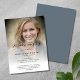 Um convite à lembrança de cinzas azul empoeirada com um convite personalizado para a celebração de um modelo de vida que é fácil de personalizar. Adicione uma foto do seu amado. Para redimensionar e posicionar sua foto, clique no botão "PERSONALIZAR TI".