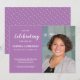 Convide amigos e família a compartilhar suas histórias e memórias favoritas com esta comemoração roxa e branca e alegre lavanda do convite para fotos da vida.