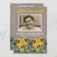 Celebrar a vida de seus entes queridos com nossos convites temáticos. Apresentando um pano de fundo quente de madeira de casca quente, girassóis amarelos radiantes e um espaço adaptado para duas fotos significativas de marca, estes convites misturam-se perfeitamente com personalização. O modelo memorial fácil de usar torna simples transformar estes convites em lembretes eternos de uma vida que viveu plena e amada profundamente.