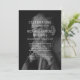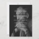 Convite para comemoração da vida com texto branco contra uma foto do seu amado. A foto será mudada por um filtro de cinzas transparente para tornar o texto mais visível. Este convite funciona melhor com uma foto em preto e branco.