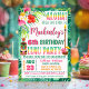 Diga aloha para se divertir com este Convite de Aniversário do Partido Luau! Apresentando designs tropicais com flores de hibisco e cores vibrantes, é perfeito para uma festiva celebração de aniversário no tema havaiano.