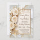 Bem-vindos à festa com flores brancas de aquarela e folhas de ouro em seda branca.