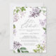 Este convite para comemoração do vamos lilás rústico é perfeito para um primavera ou festa de noivado de verão, casamento após festa, aposentadoria, formatura ou qualquer evento feliz. A romântica e elegante design floral apresenta flores lilás roxas de aquarela com uma sensação de jardim boho country.