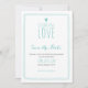DA COLEÇÃO DE CASAMENTO CELEBRANDO AMOR: Save the Date caprichoso com "Celebrando Amor", design caprichoso com coração e recorte rendilhado. A cor é um Teal Oceano Claro. Se a paleta de cores não for o que você deseja, por favor me avise e eu recriarei para você, mas por favor entre em contato comigo antes de fazer o pedido. Email paula@labellarue.com Feliz Planejamento de Casamento! Certifique-se de escolher seu papel cartão favorito para imprimi-lo.