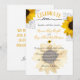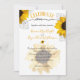 Comemorar convite para o casamento de amor. Flores de sol simples, mas elegantes e ouros, soam o ouro e a tipografia negra. Nomes de noiva e noiva acentuados em texto cursivo profundo que flui em ouro. Folhas de vidro manchadas e bonitas com salpicos de cores translúcidos. Texto principal a preto até cursivo. Os girassóis são de uma pintura original, assim como o texto A mão de amor é escrita na letra do artista. Suíte de casamento de cheio disponível na coleção floral de Sunflower.