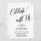 Usando uma elegante, giratória e moderna fonte de escrita, criei uma camada gráfica que diz "Celebrar conosco", para complementar os sofisticados bonés, fonte serif usada para seus detalhes. O plano de fundo pode ser alterado para qualquer cor que você preferir. Todas as camadas foram adicionadas separadamente e deixadas desbloqueadas para dar a você um controle significativo de design; faça as modificações necessárias para criar a placa que você vislumbra. E por favor, não hesite em me contactar se precisar de assistência personalizada ou se tiver pedidos especiais. 119 //
