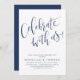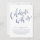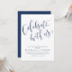 O recurso de convites simples modernos escreveu manualmente o roteiro "comemorar conosco" em azul e branco marinho, personalize-o com os detalhes do seu partido, elegante e na moda. Excelente para festa de noivado, festa de casamento, festa de renovação de votos e quaisquer eventos de celebração. Veja todas as peças correspondentes na coleção.