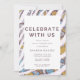convite de festas de aposentadoria de design de marrom de zebra divertida. O topo do convite é impresso com a mensagem "celebrar conosco". Adicione os detalhes da sua festa a este convite bonito para design de fronteira floral, perfeito para celebrar uma aposentadoria ou qualquer ocasião de sua escolha.