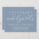 Elegantemente anuncie sua alegria para sempre com nosso moderno romântico azul empoeirado, o chamado convite para comemoração do casamento, "Celebrar com os recém-casados". Personalizado para casais continuando sua história de amor, este convite atinge um equilíbrio perfeito de sofisticação e charme, estabelecendo a cena de um evento inesquecível. Com um moderno design de roteiro contemporâneo, ele adiciona um toque de graça eterno ao seu dia especial. Projetado pelo talentoso TeeshaDerrick, este convite é uma expressão na moda do seu amor duradouro.