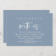 Anuncie a sua alegria para sempre em estilo com o nosso moderno design de tema rústico (Celebrar Conosco) convite para comemorações de casamento. É ideal para casais que decidiram celebrar a noite antes do seu grande dia. Com seu design sofisticado, mas lúdico, este convite certamente define o tom de um evento inesquecível. O cartão de convite apresenta um moderno design, empoeirado tema azul, acrescentando um toque de elegância eterno à sua celebração. Projetado por TeeshaDerrick