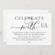 Elegantemente anuncie sua alegria para sempre com nossa carta de convite para celebração de elopementos de casamento, "Celebre conosco". Personalizado para casais continuando sua história de amor, este convite atinge um equilíbrio perfeito de sofisticação e charme, estabelecendo a cena de um evento inesquecível. Com um moderno design de roteiro contemporâneo, ele adiciona um toque de graça eterno ao seu dia especial. Projetado pelo talentoso TeeshaDerrick, este convite é uma expressão na moda do seu amor duradouro.