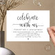 Marque o começo de sua eternidade com elegância usando nossa linda e contemporânea carta de convite para celebração de elopementos de casamento, "Celebre conosco". Perfeito para os casais estendendo sua alegre ocasião, este convite exude sofisticação com uma sugestão de brincadeira, definindo o palco para um evento memorável. Adorado com um tema design de roteiro moderno de eterno, ele adiciona um toque de encanto refinado às suas festividades. Feito por TeeshaDerrick, este convite promete capturar maravilhosamente sua história de amor.