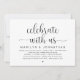 Elegantemente anuncie sua alegria para sempre com nossa linda e moderna carta de convite para celebração de elopementos de casamento, "Celebrar conosco". Personalizado para casais continuando sua história de amor, este convite atinge um equilíbrio perfeito de sofisticação e charme, estabelecendo a cena de um evento inesquecível. Com um moderno design de roteiro contemporâneo, ele adiciona um toque de graça eterno ao seu dia especial. Projetado pelo talentoso TeeshaDerrick, este convite é uma expressão na moda do seu amor duradouro.