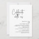 Elegantemente anuncie sua alegria para sempre com nosso moderno tema negro e branco da recepção, janta ou almoço, brunch ou festa e convite para dança, "Celebre conosco". Personalizado para casais continuando sua história de amor, este convite atinge um equilíbrio perfeito de sofisticação e charme, estabelecendo a cena de um evento inesquecível. Com um moderno design de roteiro contemporâneo, ele adiciona um toque de graça eterno ao seu dia especial. Projetado pelo talentoso TeeshaDerrick, este convite é uma expressão na moda do seu amor duradouro.