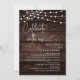 Fundo moderno de madeira castanha rústica e escura, com luzes de cordas de cabana de cabra e temas, cartão de convite para elopementos de casamento (comemorar conosco). É perfeito para sua recepção de elopemento de casamento/festa de celebração de posto.