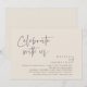 Elegantemente anuncie sua alegria para sempre com nosso moderno tema da cinza de natas estéticas, o convite de celebração de elopementos de casamento, "Celebrar conosco". Personalizado para casais continuando sua história de amor, este convite atinge um equilíbrio perfeito de sofisticação e charme, estabelecendo a cena de um evento inesquecível. Com um moderno design de roteiro contemporâneo, ele adiciona um toque de graça eterno ao seu dia especial. Projetado pelo talentoso TeeshaDerrick, este convite é uma expressão na moda do seu amor duradouro.