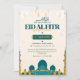 Este vibrante convite de festas Eid al-Fitr apresenta um design moderno, atraente aos olhos, com um padrão ilustrativo verde e amarelo. É a maneira perfeita de convidar seus entes queridos para celebrar o fim do Ramadã no estilo! A design também inclui a saudação árabe "ت ه ئ ة ع ي د سنعيدs" (Eid Mubarak) para adicionar um toque de tradição.