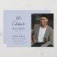 Vamos Celebra o Formando! Convide amigos e familiares para uma Festa de formatura com este modelo de fotos do formando na moda. Este design de alta qualidade é fácil de personalizar para ser exclusivamente seu! Este convite para a graduação de fotos apresenta uma foto do formando na frente e um modelo de festa elegante que pode ser facilmente personalizado com seus próprios detalhes de evento. O fundo azul empoeirado pode ser alterado para qualquer cor.