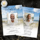 Invite family and friends to gather in remembrance with this custom image Celebration of Life or funeral memorial invitation showcasing two photos of your loved one and editable background images (shown with a beach image you can keep or change to an image(s) that represents them best). Personalize with your loved one’s name, dates and event details to create a meaningful tribute. ASSISTANCE: For help with design modification or if you would like coordinating items, contact the designer BEFORE ORDERING via the Zazzle Chat MESSAGE tab or email makeitaboutyoustore@gmail.com.
