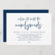 Convite de casamento íntimo com tema Moderno e Elegante em azul-marinho (Celebre com os recém-casados). É perfeito para a recepção de casamento íntimo ou festa de celebração pós-casamento. Adicione seus detalhes em fonte / letra preta correspondente.