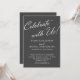 Você já se casou e agora é hora da grande celebração. Este cartão simples e elegante pode ser a solução ideal para você! Com uma fonte de caligrafia, o cabeçalho diz "Celebre Conosco". Use os campos do modelo para adicionar seus detalhes pessoais. E mude a cor do fundo para a que preferir! // 155 //