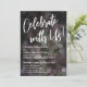 Convide seus convidados para a celebração do seu casamento com a ajuda desses cartões de convite arrojados. Para o cabeçalho, usei uma fonte manuscrita casual, moderna, para criar uma sobreposição de tipografia gráfica que diz "Celebre Conosco!". O fundo foi coberto com uma imagem escura e desgastada, apresentando texturas vintage riscadas com reflexos de luz bokeh festivos. Preencha os espaços em branco do modelo com seus detalhes para personalizar o design. Todas as camadas foram deixadas desbloqueadas para que você também possa clicar para personalizar ainda mais e reposicionar o texto ou até mesmo alterar tamanhos ou fontes. Por favor, não hesite em entrar em contato para obter ajuda com a personalização.