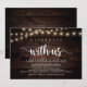 Celebre conosco, Anúncio de Casamento Fugitivo / Cartão de convite, em Madeira Rústica de Fazenda, design de Luzes de Corda. Isto é perfeito para a recepção do seu casamento e festa de celebração pós-casamento. Adicione seus detalhes na fonte / letra correspondente.