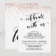 Aqui está uma escolha festiva para as necessidades da sua celebração pós-casamento. Sobre um fundo branco editável, coloquei um gráfico de tipografia que diz "celebre conosco" apresentando uma fonte de letra elaborada e adornada com corações. Atrás deste cabeçalho, confetes brilhantes de cor cobre falso-metálico parecem cair de cima. Use os campos do modelo para adicionar seus próprios detalhes e clique para personalizar ainda mais se desejar fazer quaisquer modificações adicionais. Todas as camadas estão desbloqueadas para permitir todo o controle de posicionamento e dimensionamento que você desejar.