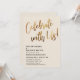 Convide seus convidados para a celebração do seu casamento com a ajuda destes simples cartões de convite. Para o cabeçalho, usei uma fonte manuscrita casual e moderna para criar uma sobreposição de tipografia gráfica que diz "Celebre Conosco!". Esta imagem foi decorada com um efeito de folha de ouro falso liso para um resultado festivo. Preencha os espaços em branco do modelo com seus detalhes para personalizar o design. Todas as camadas permaneceram desbloqueadas para que você também possa clicar para personalizar ainda mais e reposicionar o texto ou até mesmo alterar tamanhos ou fontes. Altere o fundo sólido para qualquer cor que preferir. Alternativamente, você pode optar por adicionar uma imagem ao verso. Por favor, não hesite em entrar em contato para obter ajuda com a personalização.