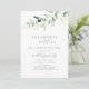 Celebrar conosco o convite à festa de casamento rústica apresenta a aquarela verde botânica eucalipto e a moderna escrita e letra chic, elegante e romântica, excelente para o casamento rústico moderno, casamento do jardim botânico e casamento do boho country. Veja todas as peças correspondentes na coleção.