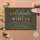 Marque o início do seu para sempre com elegância usando nosso convite de celebração de casamento com tema contemporâneo, "Celebre conosco". Perfeito para casais que desejam estender sua ocasião alegre, este convite exala sofisticação com um toque de alegria, preparando o cenário para um evento memorável. Adornado com um tema de design de letra moderna atemporal, ele adiciona um toque de charme refinado às suas festividades. Criado por TeeshaDerrick, este convite promete capturar lindamente a sua história de amor.