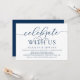 Moderno tema de caligrafia minimalista romântica, Script Azul-Marinho, cartão de convite para jantar ou festa de elopamento de casamento (Celebre conosco). É perfeito para o anúncio de elopamento de casamento e celebração da festa, após o seu melhor dia. Adicione seus detalhes em fonte / letra preta correspondente.