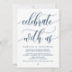 Belo Convite de Elopamento de Casamento Simples e Moderno em Azul Naval com Caligrafia, Cartão de Convite (Celebre conosco). Isto é perfeito para o seu jantar de recepção de casamento e festa de celebração pós-casamento. Adicione seus detalhes em fonte / letra correspondente. #TeeshaDerrick