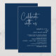 Anuncie e compartilhe seu felizes para sempre com estilo com nosso design de tema azul-marinho moderno (Celebre conosco) cartão de convite de casamento para celebração de fuga. É ideal para casais que decidiram celebrar seu melhor dia. Com seu design sofisticado e divertido, este convite certamente dará o tom para um evento inesquecível. O cartão de convite apresenta um tema de design de roteiro moderno e minimalista, adicionando um toque de elegância atemporal à sua celebração. Criado por TeeshaDerrick
