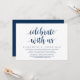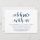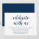 Roteiro Moderno em tema Azul Naval Clássico, cartão de convite de casamento íntimo (Celebre conosco). É perfeito para o seu jantar de casamento íntimo casual à beira do lago, dança e festa.