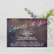 Usando uma fonte moderna e casual de letra cursiva, eu criei uma sobreposição gráfica que diz "Celebre Conosco". Isso foi colocado no topo como um cabeçalho proeminente. O fundo foi coberto com uma imagem vintage desgastada e arranhada. Esse gráfico multicolorido apresenta tons sutis de rosa framboesa, azul e verde, e dourado. Todas as camadas foram adicionadas separadamente e deixadas desbloqueadas para lhe dar controle de design; faça as modificações necessárias para criar o cartão que você imagina. // 501 //