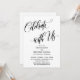 Usando uma fonte elegante, moderna e com curvas, criei uma sobreposição gráfica que diz "Celebrate with Us", para complementar a sofisticada fonte serifada em maiúsculas usada para seus detalhes. O fundo pode ser alterado para qualquer cor de sua preferência. Todas as camadas foram adicionadas separadamente e deixadas desbloqueadas para lhe dar um controle significativo sobre o design; faça as modificações necessárias para criar o cartão que você imagina. E por favor, não hesite em entrar em contato comigo se precisar de ajuda com personalização ou tiver pedidos especiais. // 119 //