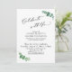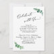 Você já se casou e agora é hora da grande celebração. Este cartão elegante pode ser a solução ideal para você! Com uma fonte de caligrafia moderna, o cabeçalho diz "Celebre Conosco". Os cantos são acentuados com pequenos ramos de eucalipto aquarela. Use os campos do modelo para adicionar seus detalhes pessoais. // 137 //