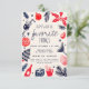 Reúna a tripulação! Este convite de férias vermelho e azul feito à mão traz encanto retrô e vibrações festivas para uma festa confortável e cheia de diversão lembrar.