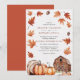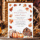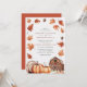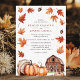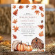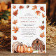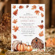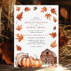 Dê as boas-vindas aos seus convidados para um casamento rústico de outono com este convite encantador, apresentando um celeiro aconchegante, abóboras e uma deliciosa variedade de folhas de outono e bolotas em um fundo branco suave e crocante. Os tons quentes e terrosos e os elementos naturais simples evocam a beleza serena da estação outonal, tornando este design perfeito para uma celebração no campo. Este convite captura a essência da época da colheita, ideal para casais que buscam um tema elegante, porém rústico, para o seu dia especial.