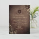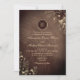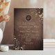 Transporte seus convidados para um charmoso evento no campo com nosso convite de casamento em madeira de celeiro vintage e elegante. Criado com charme rústico, este convite apresenta detalhes intricados de renda floral em dourado boho, adicionando um toque de elegância caprichosa.