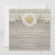 Este é um convite de casamento em estilo rústico e bonito, destinado a um evento somente de recepção. Seu fundo apresenta tábuas de madeira cinza desgastadas, dando-lhe um toque caloroso e charmoso. Um delicado padrão de renda bege com detalhes florais adorna a parte superior, adicionando um toque de elegância. A frase "por favor, junte-se a nós" é exibida de forma proeminente em uma fonte cursiva e graciosa, também em bege, combinando perfeitamente com o tema. Na parte inferior, há uma margarida com pétalas suaves bege e centro amarelo, complementada por ramalhetes de flores amarelas em ambos os lados, unindo o design com uma estética natural e convidativa. A parte de trás tem um design semelhante onde você pode preencher todos os detalhes. É simples, mas sofisticado!