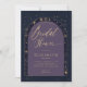 Um modelo moderno e elegante, com um tema celeste, lua e estrelas, tarô, contador da sorte, com um duplo quadro de arco de ouro e elementos celestes: o sol, a lua, o cálice, constelações, estrelas... num esquema roxo, preto e dourado (o ouro é um efeito digital). Uma astrologia divertida, horoscópio, zodíaco, design de chá de panela celestial para uma noiva moderna.