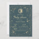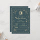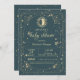 Celestial gold sun and moon, and stars on a watercolor sage green background. These baby shower invitations are easily customized for your event by simply adding your details.